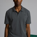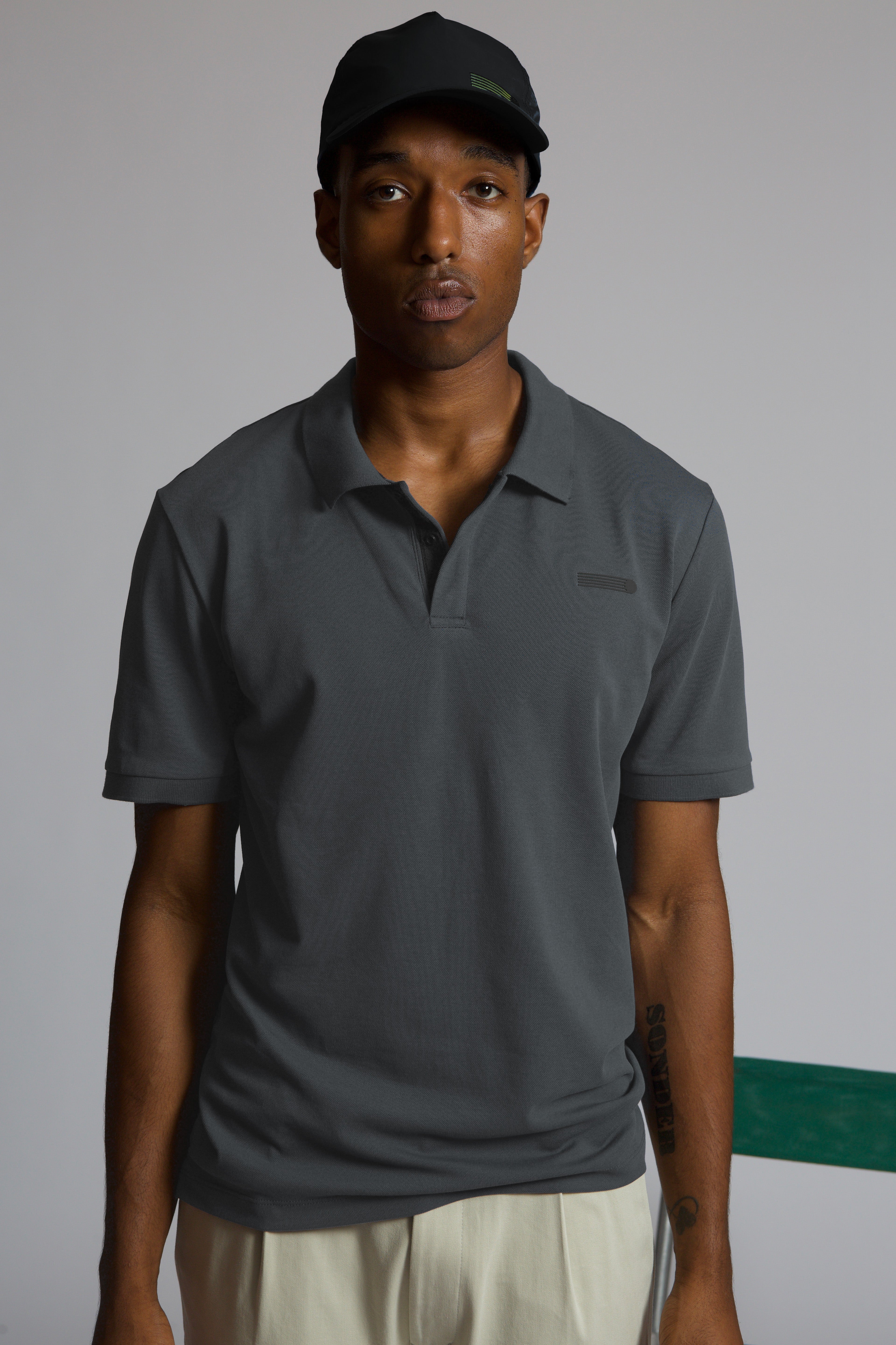 A classic polo with hidden center front placket for a clean, modern look. Custom-developed pique fabric that has technical properties with a natural fiber hand feel.